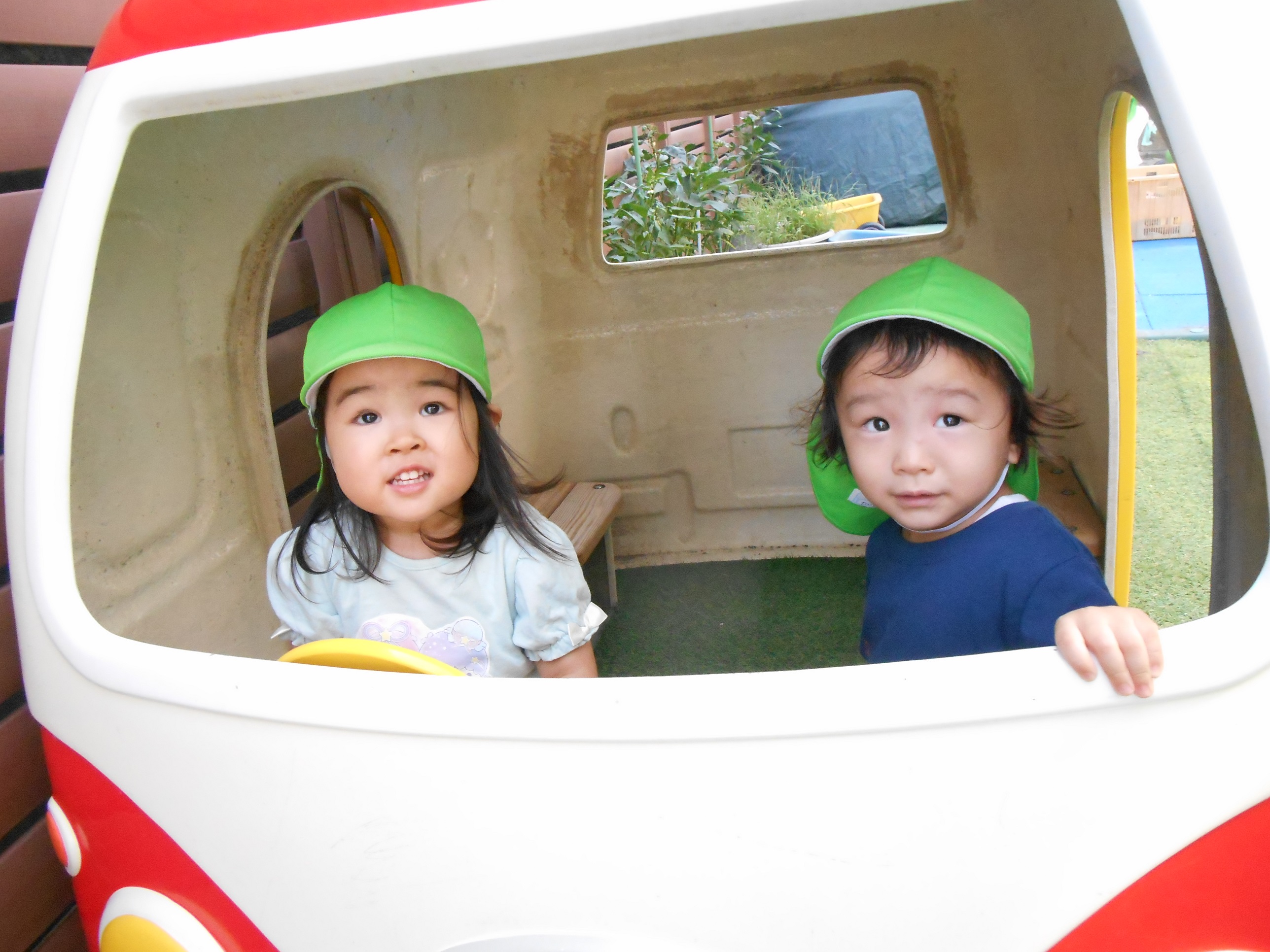 バスの中から「いってきまーす!」